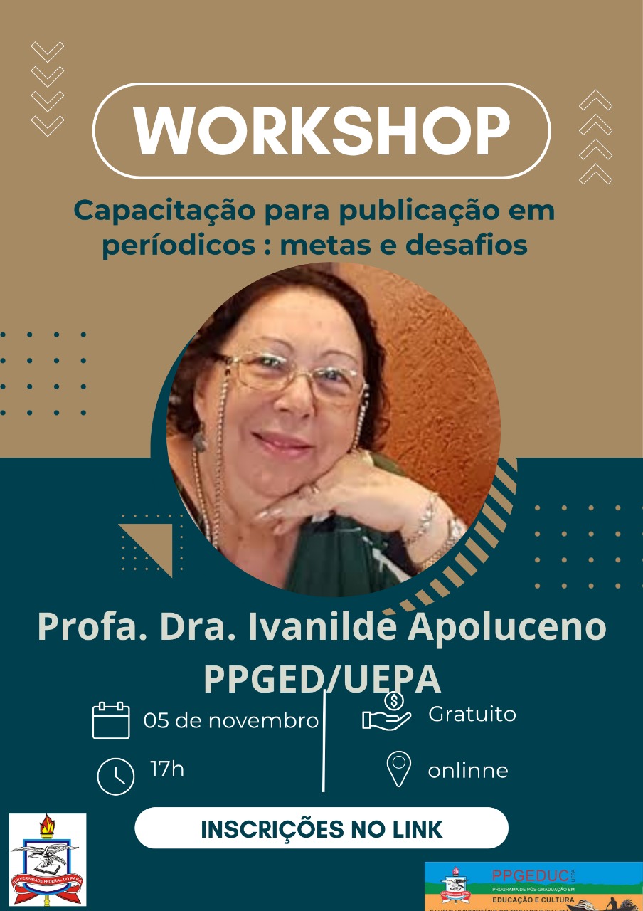 A linha de Políticas e Sociedade, do Programa de Pós-Graduação em Educação e Cultura (PPGEDUC) do Campus Universitário do Tocantins – Cametá/UFPA, promoverá no dia 05 de novembro, em formato online, o Workshop – Capacitação para Publicação em Periódicos: Metas e Desafios. A formação será ministrada pela Prof.ª Dr.ª Ivanilde Apoluceno (PPGED/UEPA) e tem como objetivo orientar discentes, docentes e pesquisadores quanto às estratégias de publicação em periódicos qualificados, abordando as metas e desafios inerentes à produção científica. O público-alvo do curso abrange professores, pesquisadores e pós-graduandos, visando fortalecer a cultura de pesquisa e incentivar a divulgação científica de qualidade nas áreas de Educação e Cultura, especialmente no contexto amazônico. O evento integra as ações formativas do PPGEDUC e busca contribuir para o aperfeiçoamento das práticas acadêmicas e o fortalecimento da produção intelectual no âmbito da pós-graduação.