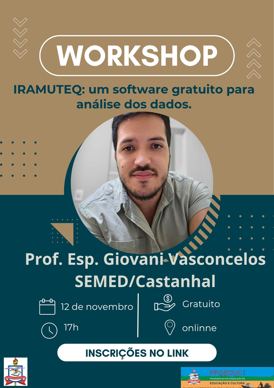 A formação será ministrada pelo Prof. Esp. Giovani Vasconcelos (SEMED/Castanhal) e tem como objetivo orientar discentes, docentes e pesquisadores quanto ao uso do software IRAMUTEQ na organização, tratamento e análise estatística de dados textuais, contribuindo para o aprimoramento metodológico das pesquisas acadêmicas.